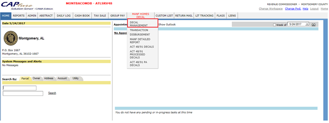 Hover over MANF HOMES DECAL and then click on Decal Management.