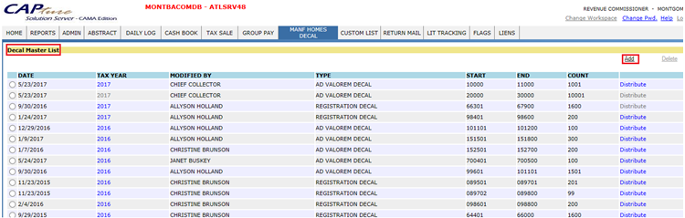 Go to MANF HOMES DECAL, click on new Decal button to create the new Decal.