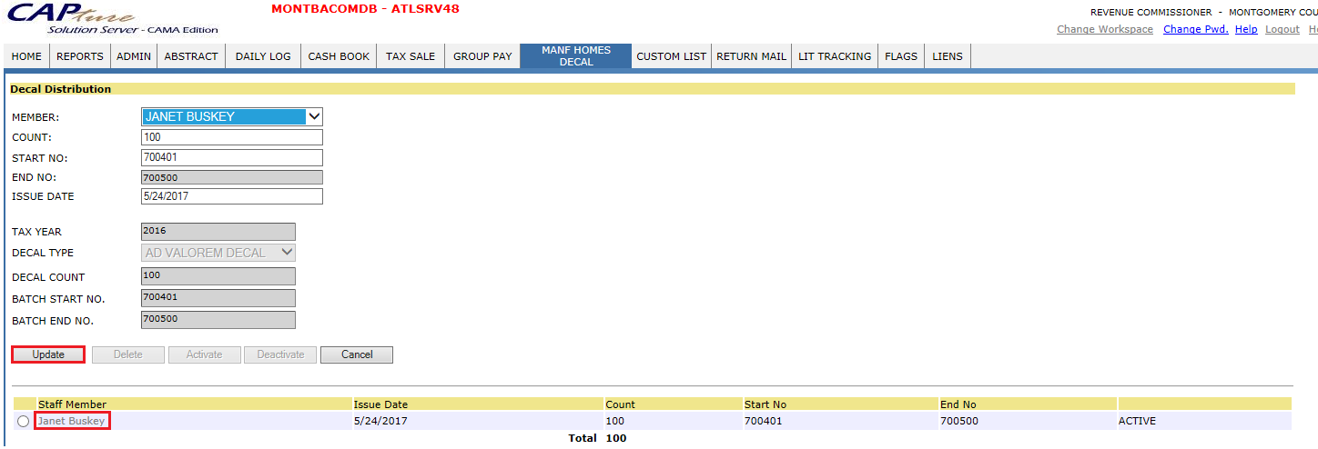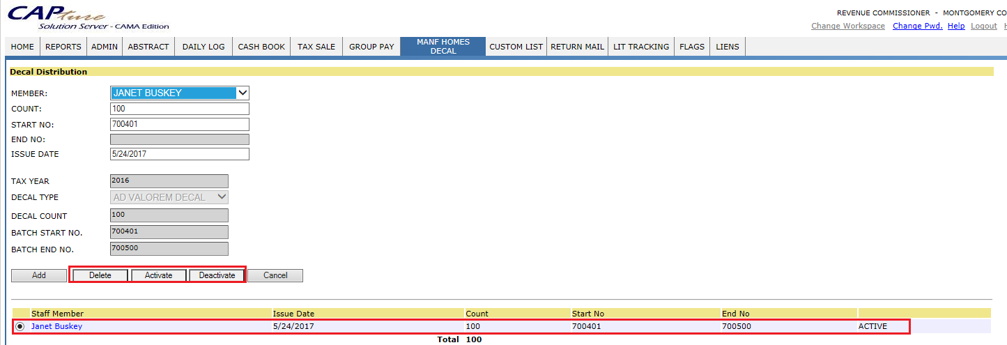 Step 6: User can Activate,Deactivate and Delete the Distribution Decal by selecting the Decal Master record.